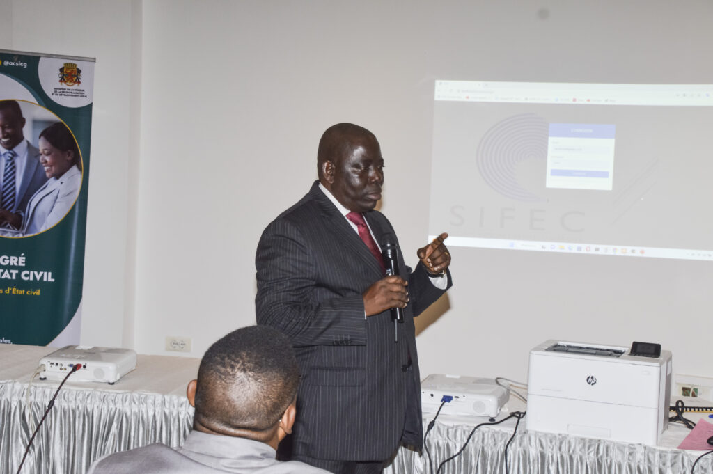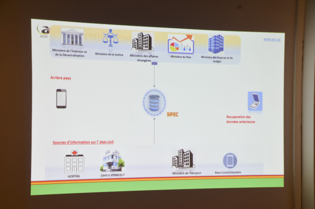 Cette plateforme a été présentée par les membres de l’équipe projet de l’ACSI, ceux-là mêmes qui l’ont conçue et réalisée. Alban Gildas Loundou Obela, Chef de projet et membre de l’équipe, a pour sa part, présenté les principales fonctionnalités du SIFEC, sur les cas de déclaration de naissance et de décès, tandis que Jacques Essissongo en a fait le commentaire puis traduit le besoin de la plateforme, formulé par le Ministère de l’Intérieur. « Cette plateforme, qui est en phase d’implémentation avancée, est la réponse de l’ACSI, à l’expression de besoin venant du Ministère de l’Intérieur, de la décentralisation et du développement local, à travers la Direction générale de l’Administration du territoire (DGAT)»,  a souligné le DG de l’ACSI.